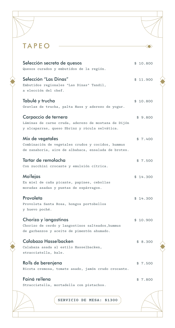 The menu includes a variety of options, from small plates ideal for sharing—like a secret selection of cheeses and cured meats—to main dishes featuring fresh trout salads and well-prepared quinoa blends. Lightly smoked gravlax, tender carpaccio, and coastal influences such as chorizo with langostinos showcase the kitchen's attention to detail. Desserts bring a delicate close to the meal with refined choices like lemon sablée and classic tiramisú.